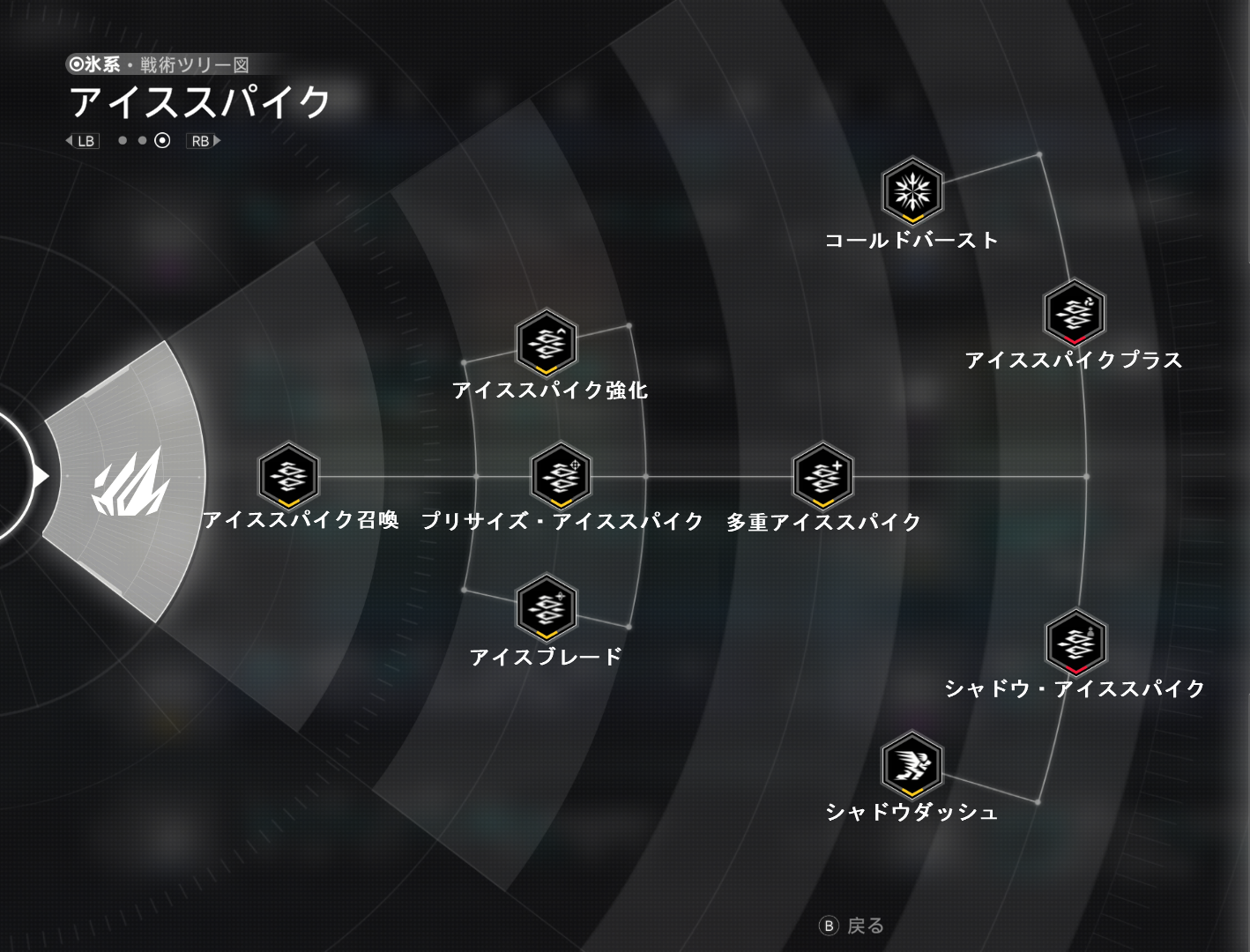 | Ⅱ | アイススパイク強化 | - | ホワイト | アイススパイクが大きくなり、ダメージが40%上昇する。 |