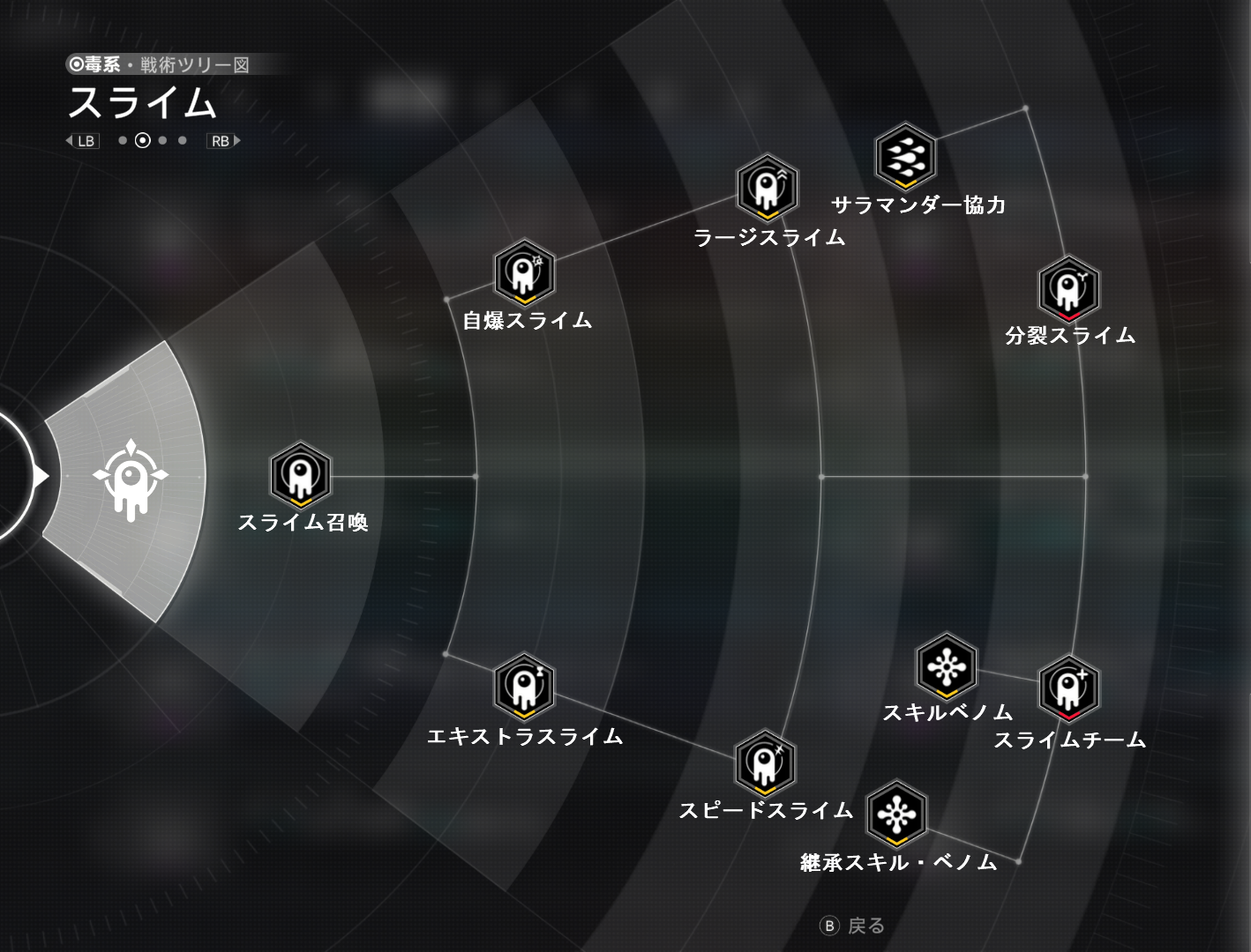 | Ⅲ | ラージスライム | - | ホワイト | スライムが大きくなり、ダメージが38%上昇する。 |
