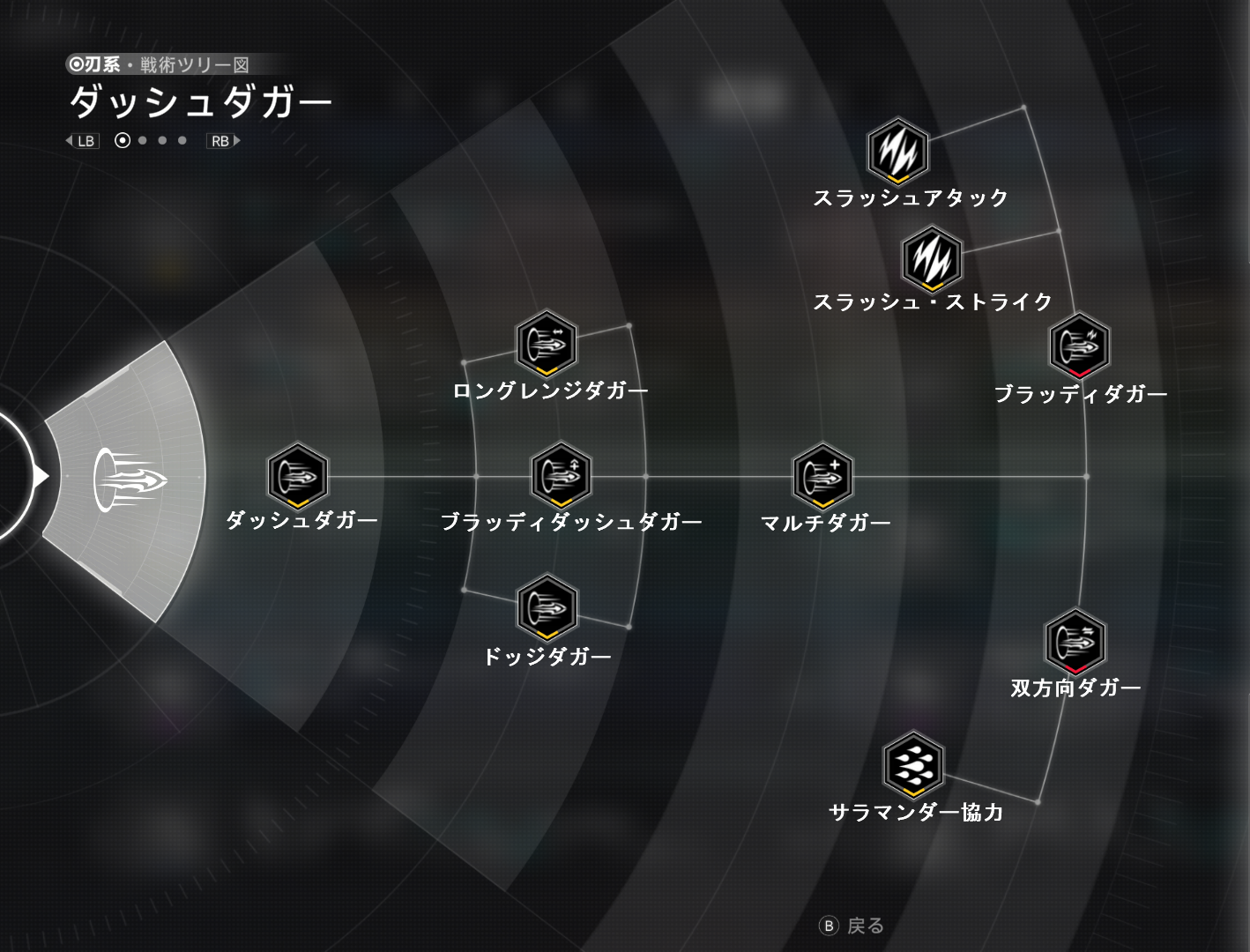 | Ⅱ | ロングレンジダガー | - | ホワイト | ダガーの飛距離が伸び、ダメージが38%上昇する。 |