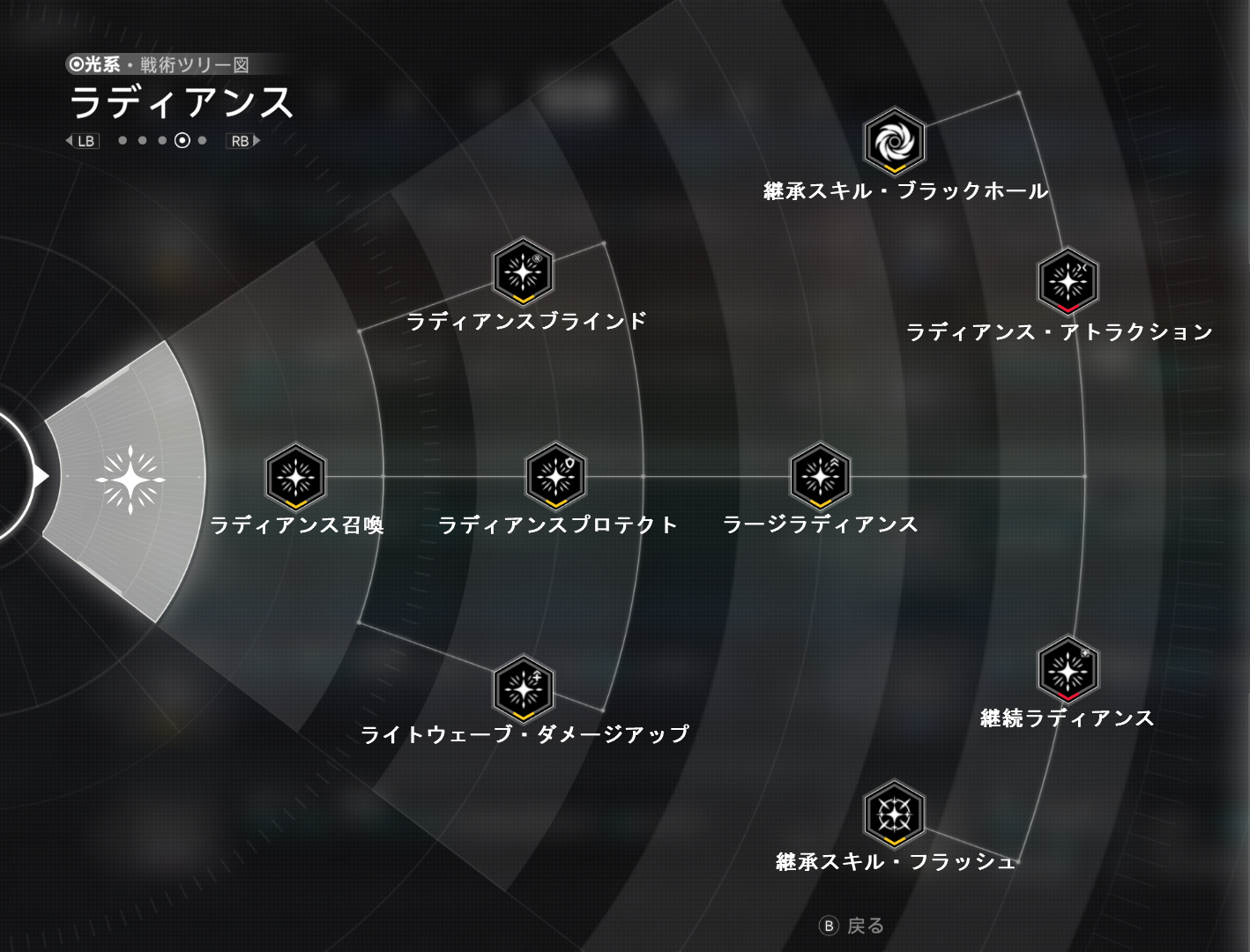 | Ⅱ | ラディアンスブラインド | - | ホワイト | ラディアンスの展開時、敵に1秒間ブラインド状態を付与する。 |