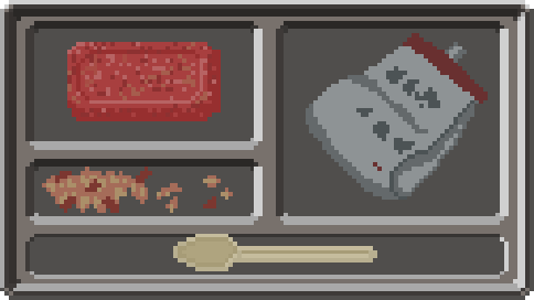 ランダムな料理が配給され、各料理に応じたステータスが上昇する。