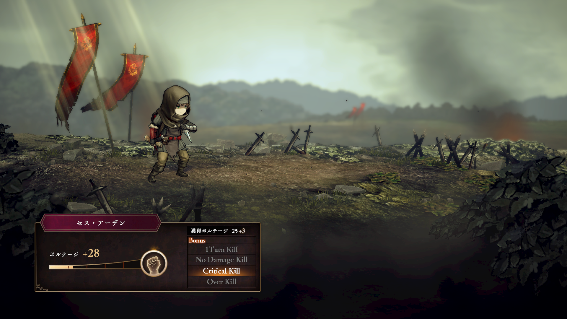 敵ユニットと戦闘した味方ユニットは、戦闘終了時にボルテージが上昇する。