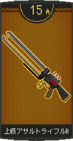 ![]() | 上級アサルトラィフルBを装備。 同名武器を装備していれば耐久力が回復。 特徴:低威力高連射 |
