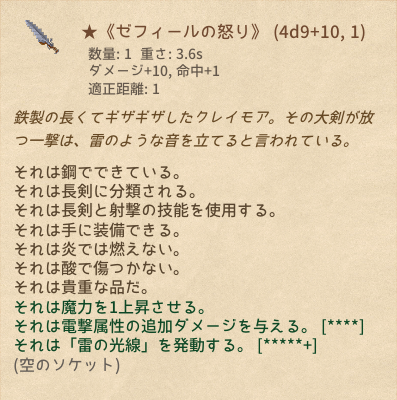 | ★《ゼフィールの怒り》 | 長剣 | 6 | 1 | マウスホバーで性能表示*12 |