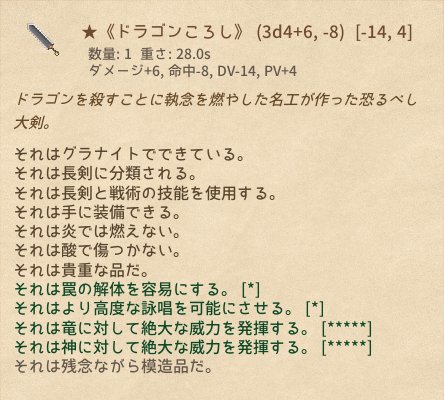 | ★《ドラゴンころし》 | 長剣 | 4 | 1 | マウスホバーで性能表示*8 |