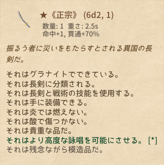 | ★《正宗》 | 長剣 | 7 | 1 | マウスホバーで性能表示*14 |
