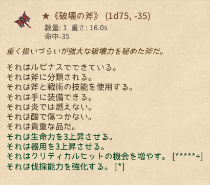 | (限定品)★《破壊の斧》 | 斧 | 23 | 1 | マウスホバーで性能表示*7 |