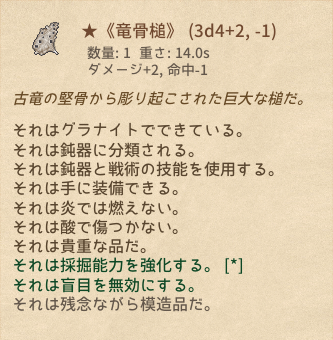 | ★《竜骨槌》 | 鈍器 | 2 | 1 | マウスホバーで性能表示*4 |