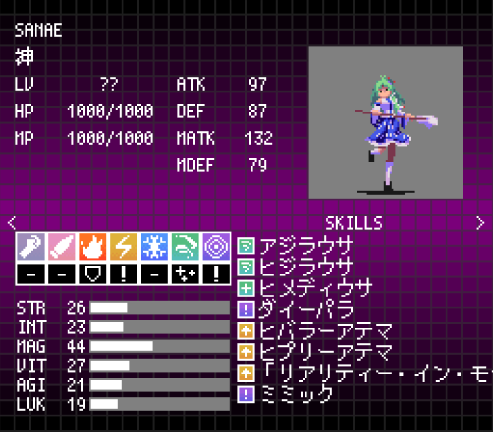 HP、DEF、MDEFが低く、回復や補助スキルを多く持つSANAEから集中攻撃で倒したい。