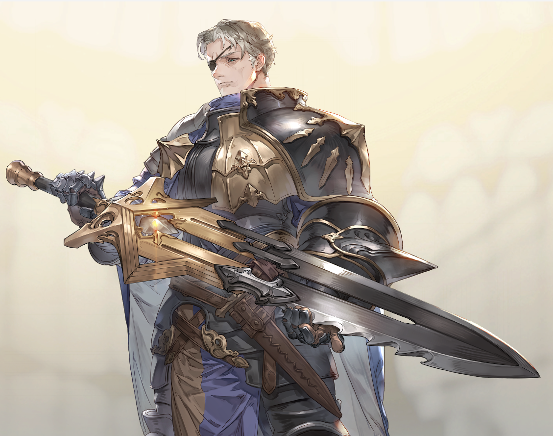 | 「神怒騎士」 騎士評議会直属の、冷血にして恐るべき威圧感を持つ隻眼の騎士。折れた神怒剣「グラム」の持ち主。 名門騎士の分家の出身であり、努力を積み重ね一度は聖騎士となることを周囲から嘱望されるまでになったが、ある任務の失敗によりその可能性は潰えた。神怒剣が折れ、片目をも失った経緯を知る者はいないが、その一件以降オーギュストは感情を捨て去り、冷酷無比な人物として知られるようになった。 ウェーブラン事件の後、命令を受けたオーギュストは先遣騎士団を率いてイリヤに赴き、ウェーブランを騎士連合の「保護下」に置くと宣言した。 |