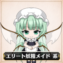 | 妖精 | ハラペコ妖精系、レッカ妖精系、バレット妖精系、パワフル妖精系、お忍びメイド妖精系、お料理メイド妖精系、せっかちメイド妖精系、エリートメイド妖精系、魔法使い妖精系、おしおき妖精系、仮面妖精系、氷精系、リリーホワイト系、サニーミルク系、ルナチャイルド系、スターサファイア系、チルノ系 | サニーミルク、ルナチャイルド、スターサファイア、チルノ | |