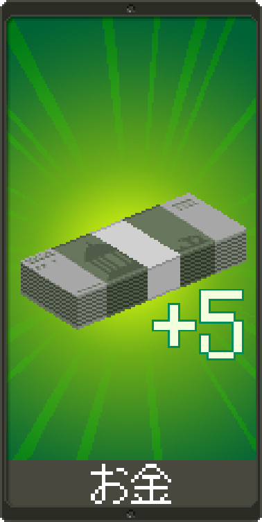 選択すると下表のうちの1つの効果がランダムに得られる。