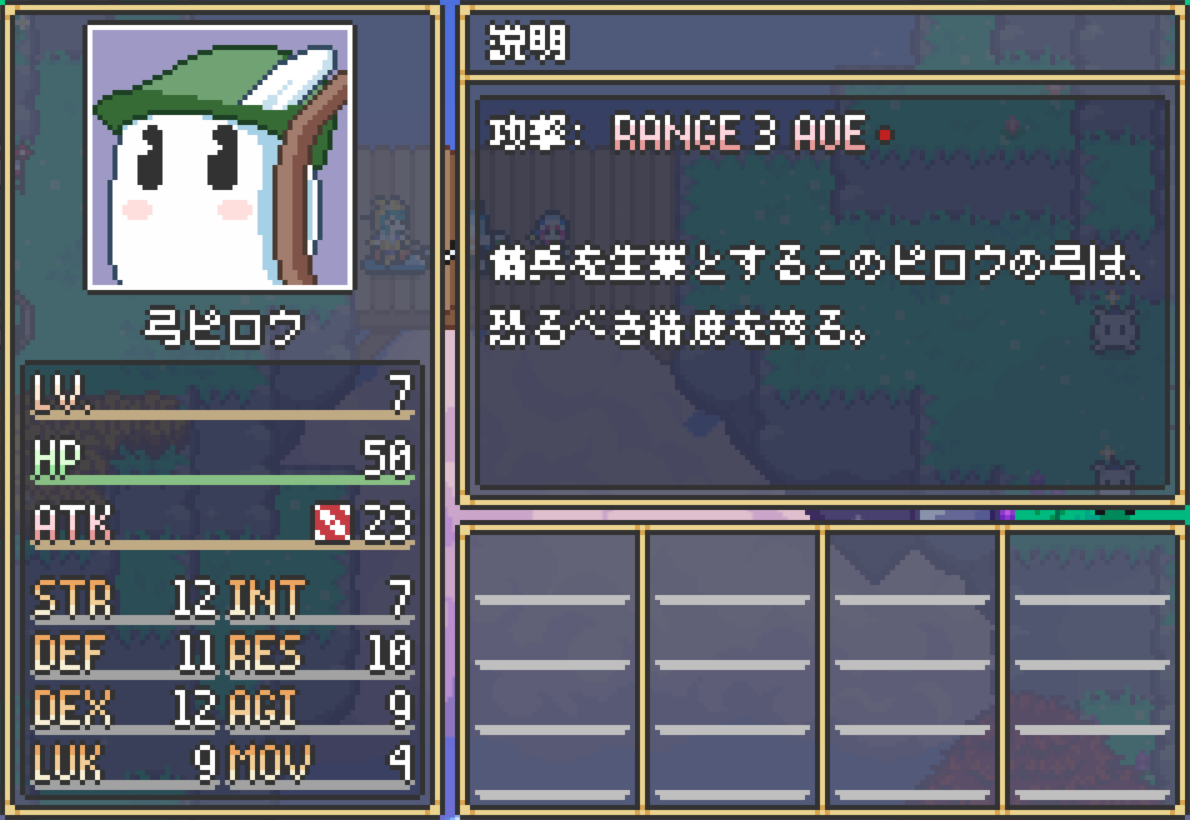 弓ピロウ(敵2ターン目終了時に増援として出現)