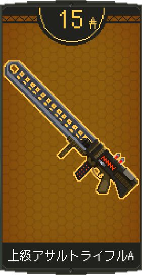 ![]() | 上級アサルトラィフルAを装備。 同名武器を装備していれば耐久力が回復。 特徴:高威力低連射 |