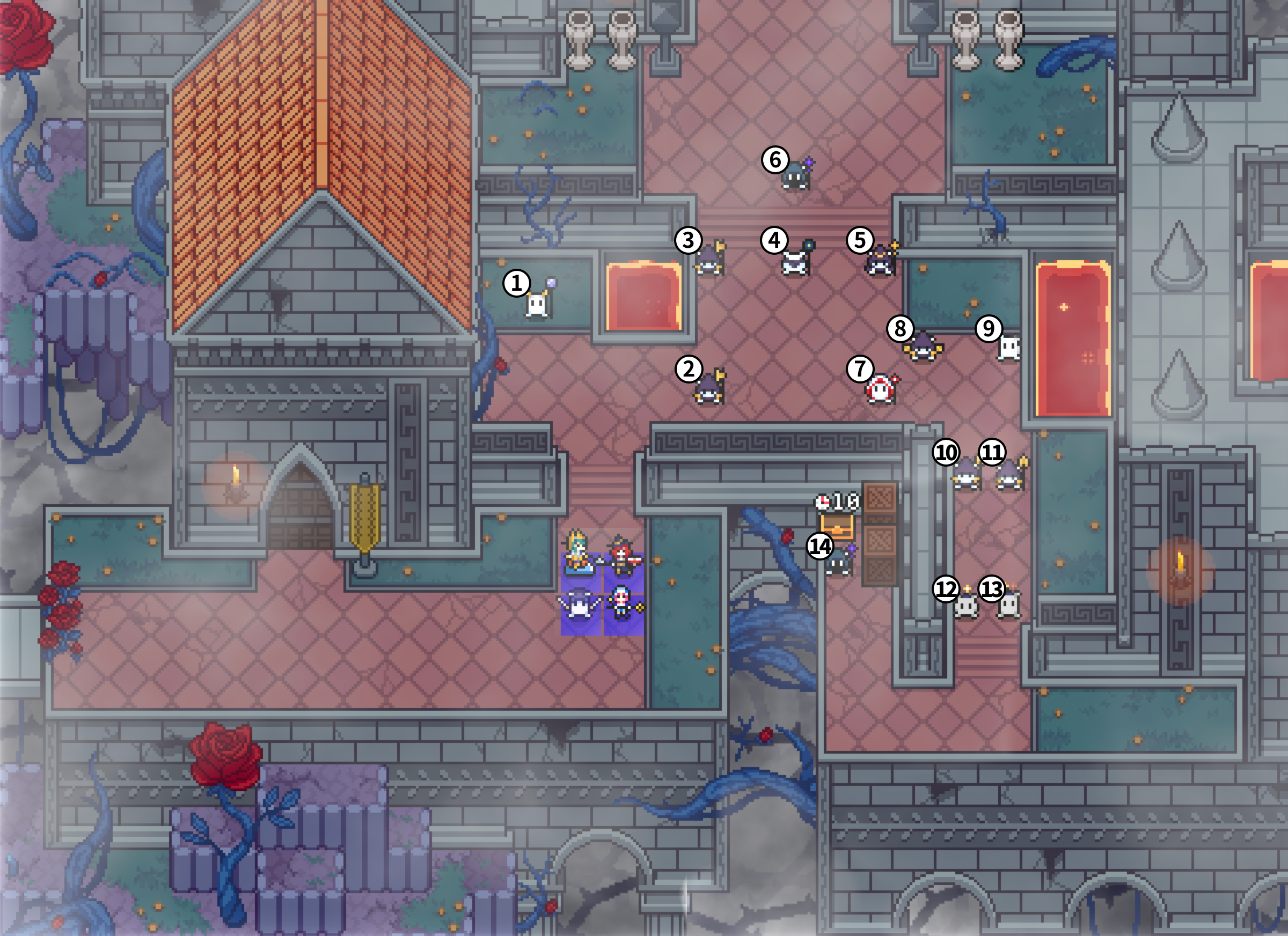 敵5、8ターン目終了時に増援。