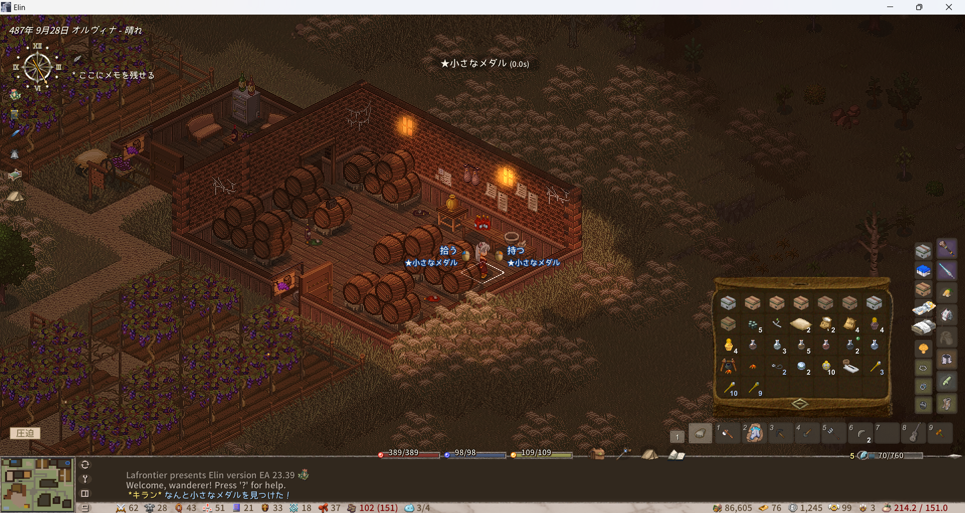 - 地下(宿屋内の下り階段から行ける)の部屋内上隅にある樽の右下