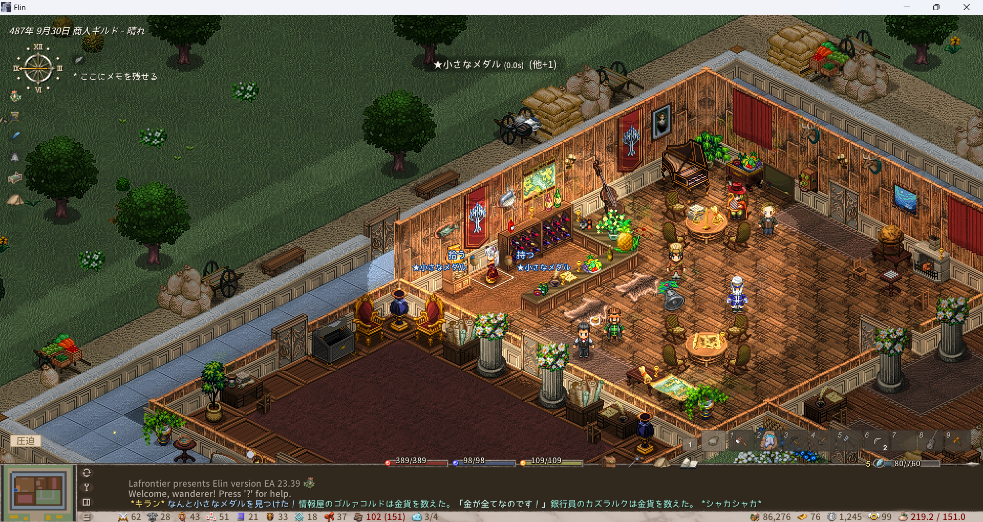 - マップ上の王宮内。宮殿内右下の寝室、王子様ベッドのあるマス。クリックだとベッドを選択してしまうのでWASDキーで。
