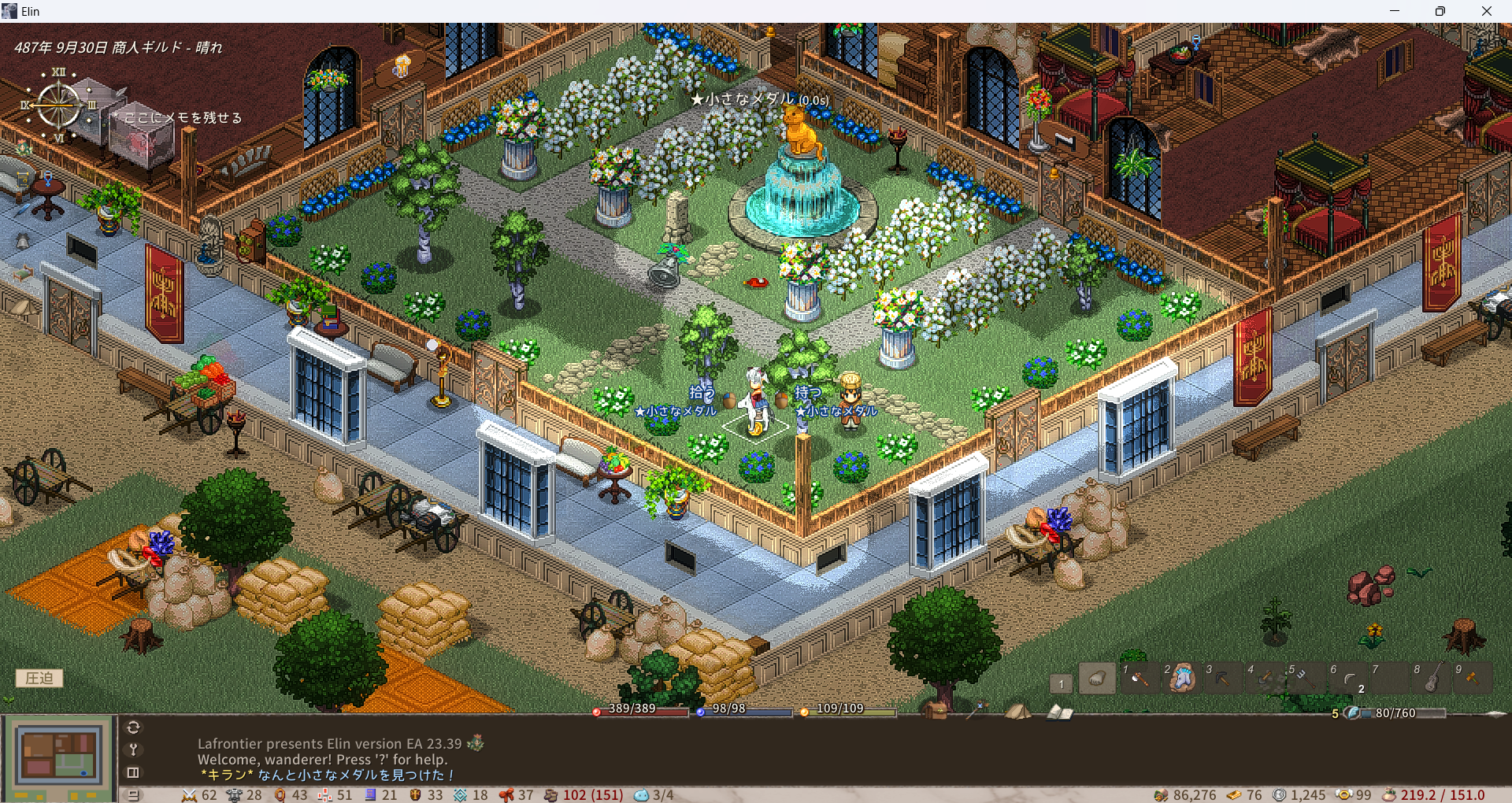 - マップ左上の王宮噴水庭園内。左の樺の木の右下。噴水下の木を伐採する必要あり。