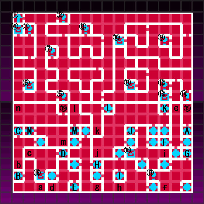 ※3 他のアルファベットについても大文字から小文字へワープする。アルファベット表記のないワープはすべて⑮に戻される。