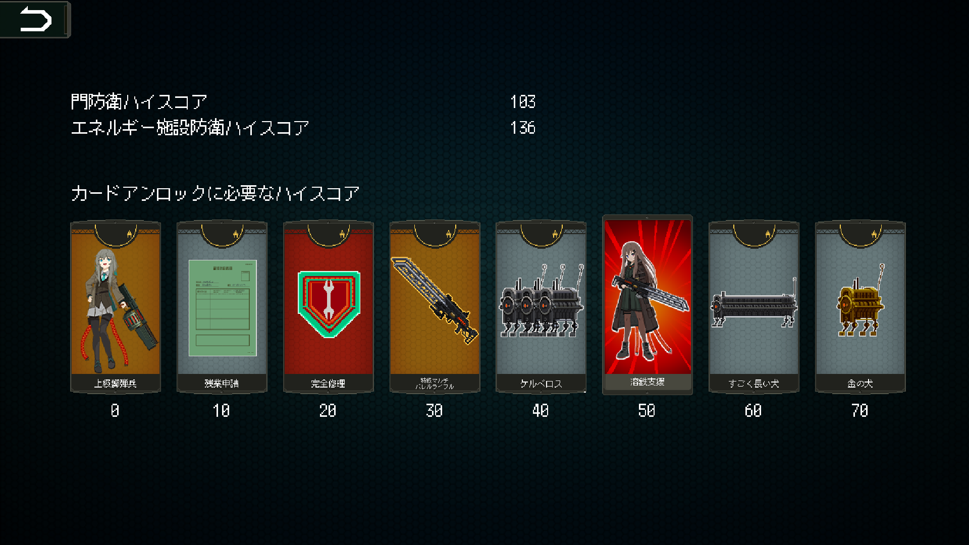 アンロックされるカードの内容や必要スコア、解放状況は、