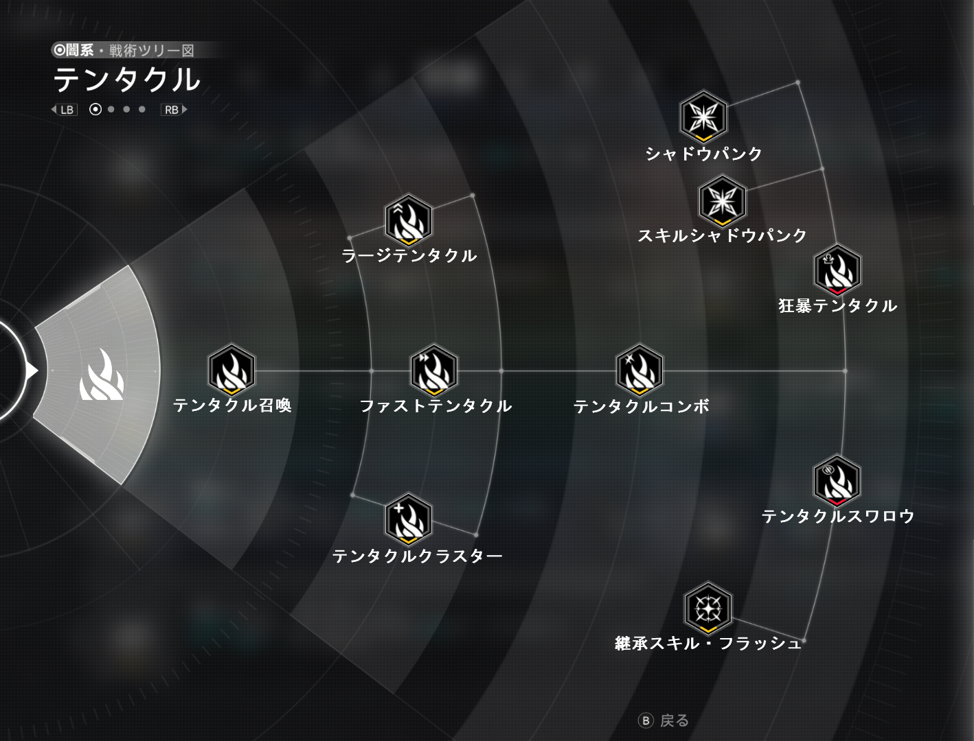 | Ⅲ | テンタクルコンボ | - | ホワイト | シャドウテンタクルが4回攻撃に変わり、総ダメージが90%上昇する。 |