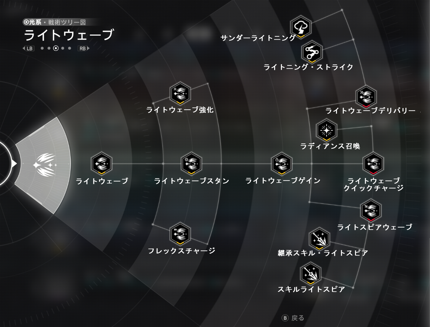 | Ⅱ | ライトウェーブ強化 | - | ホワイト | ライトウェーブの範囲が拡大し、ダメージが30%上昇する。 |