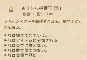 コメントはありません。 Comments/Elin 攻略Wiki/★リトル捕獲玉