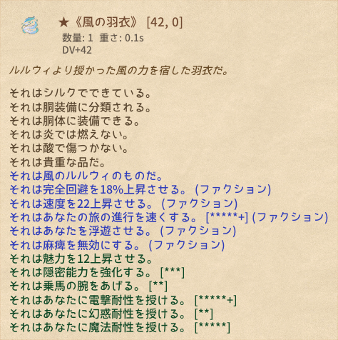 | ★《風の羽衣》 | 風のルルウィ | 胴装備 | 0.1s | *59 |
