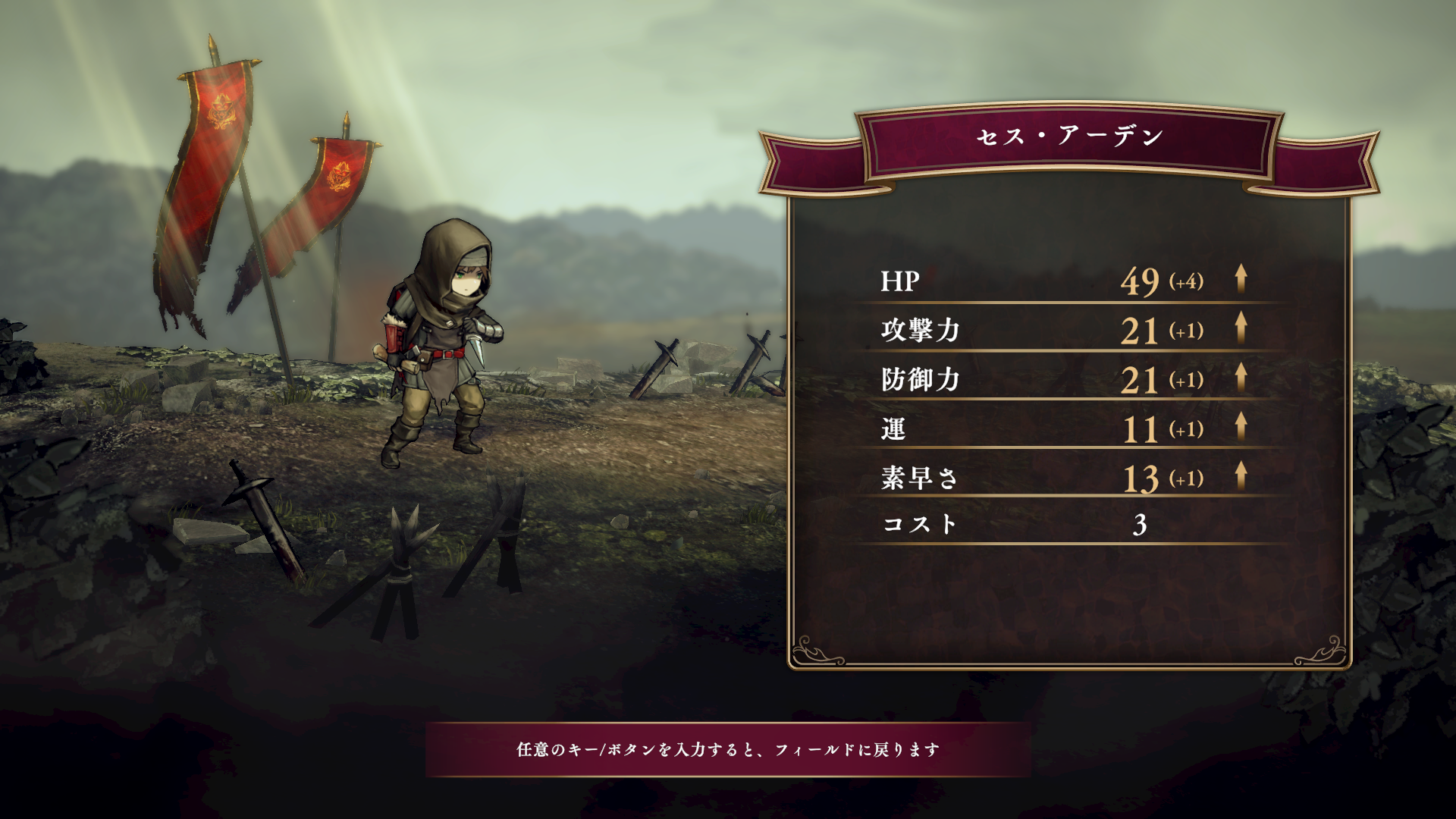 味方ユニットのステータスを強化したり、新しい味方ユニットを解放できたりする。
