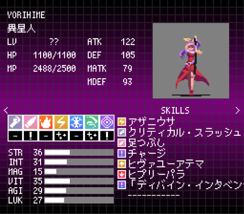 月宮殿に雑魚敵として登場するYORIHIMEが雷撃と衝撃吸収の異星人なので活躍が見込める。ただし貫通弱点なので敵YORIHIMEの足つぶしには注意。