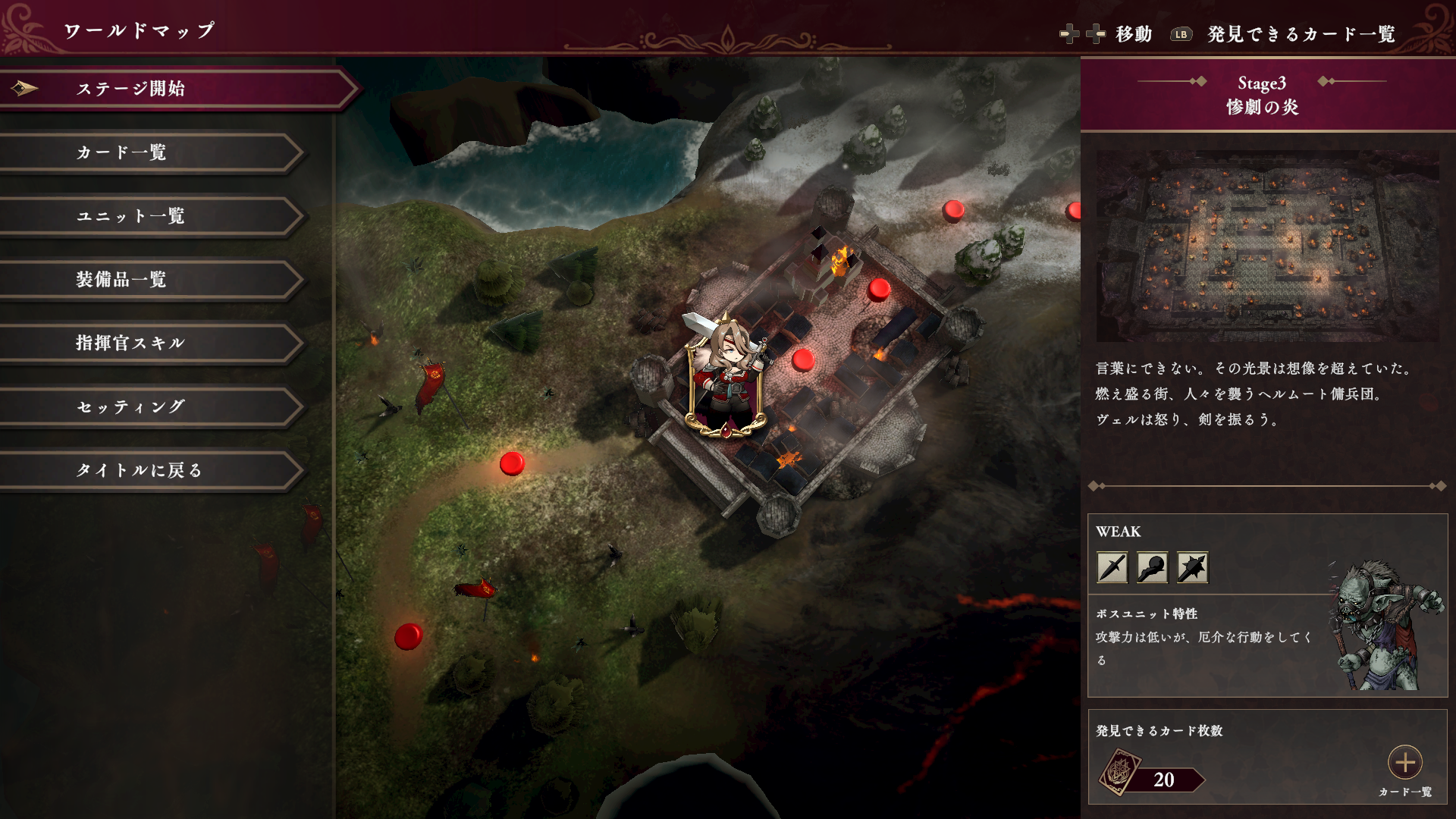 エンディングを見てから、クリア報酬のアイテムを受け取り、タイトル画面に戻ってくると、 「ワールドマップ」の項目が選択可能になる。