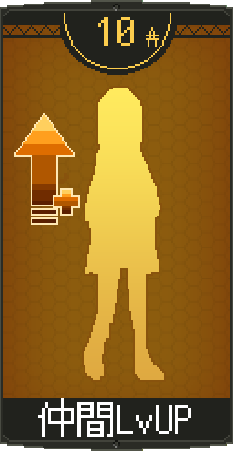 今いる仲間と同じ仲間カードを取得すると、その仲間のLvが1上がる。