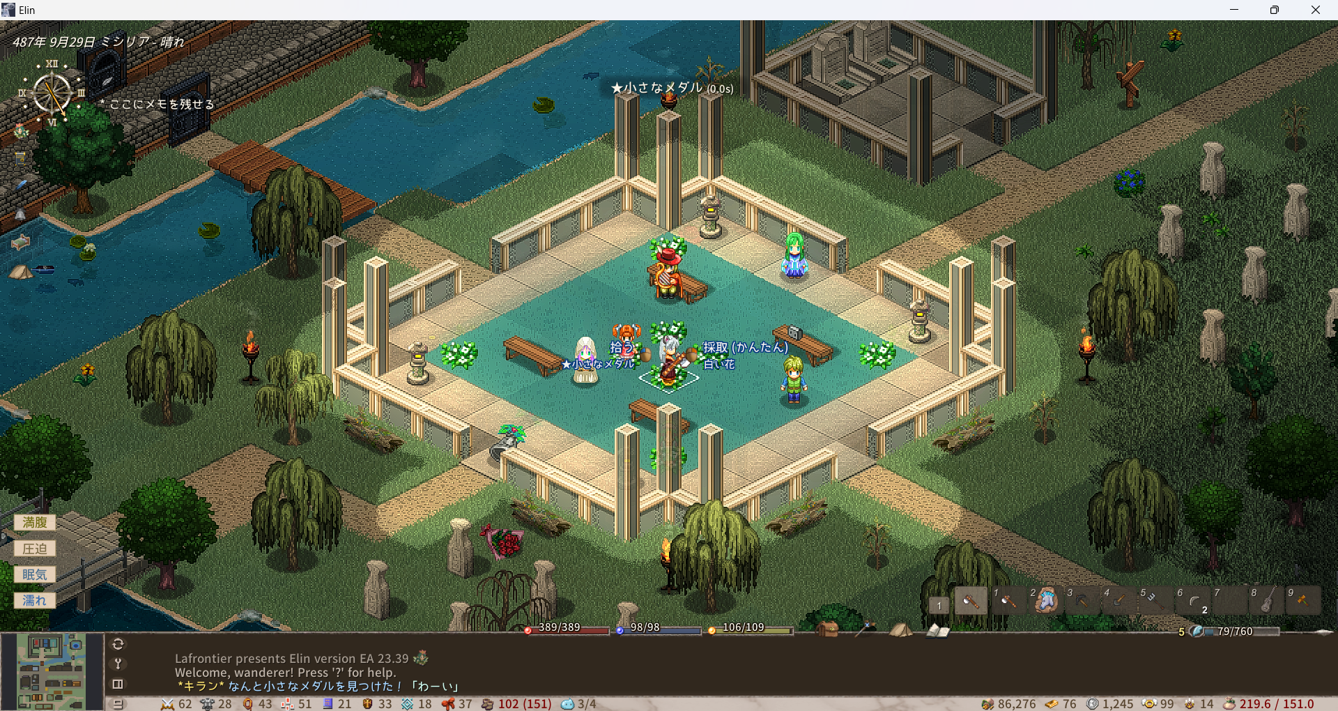 - マップ左上の王宮噴水庭園内。左の樺の木の右下。噴水下の木を伐採する必要あり。