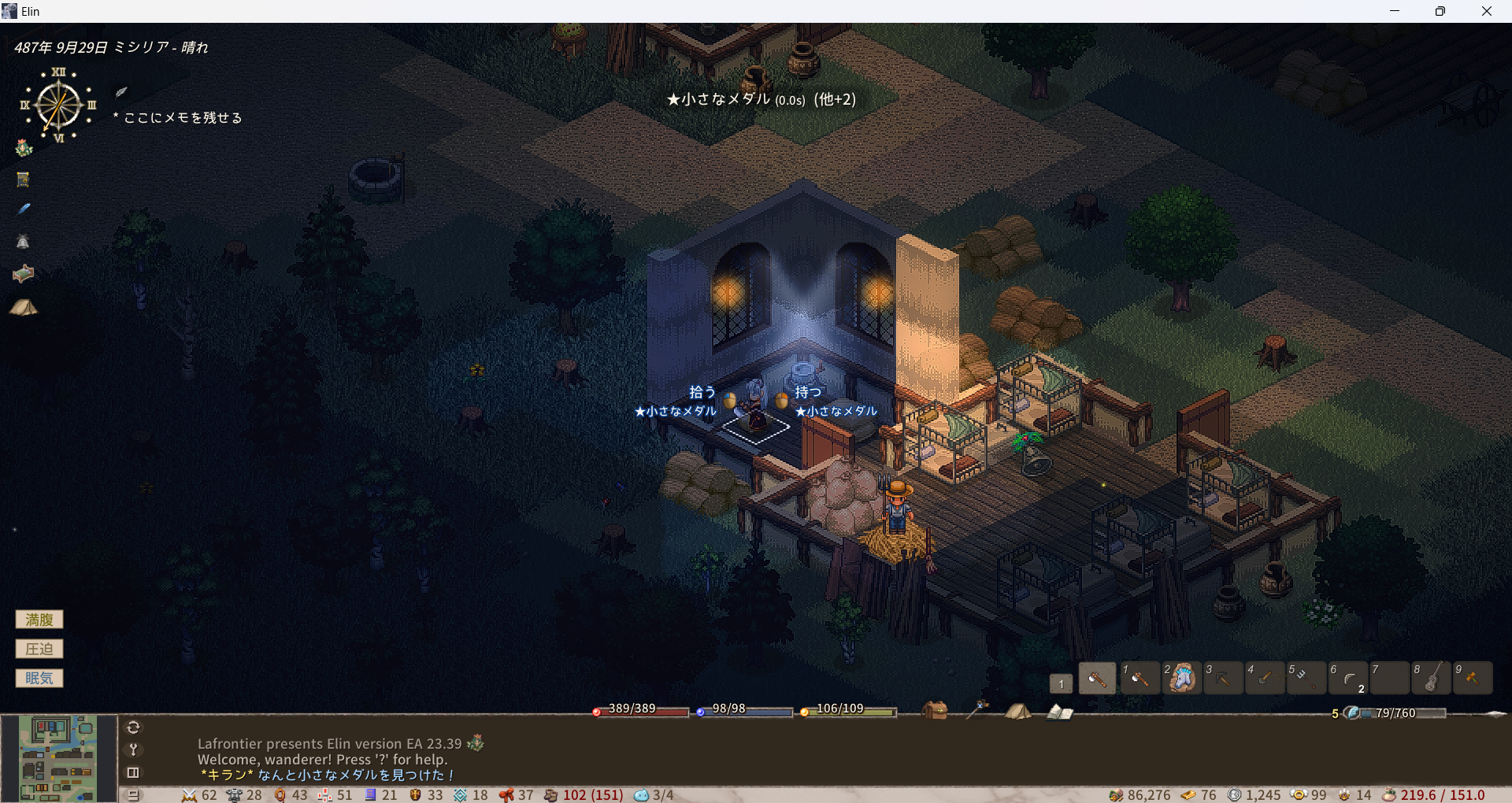 - マップ上の王宮内。宮殿内右下の寝室、王子様ベッドのあるマス。クリックだとベッドを選択してしまうのでWASDキーで。