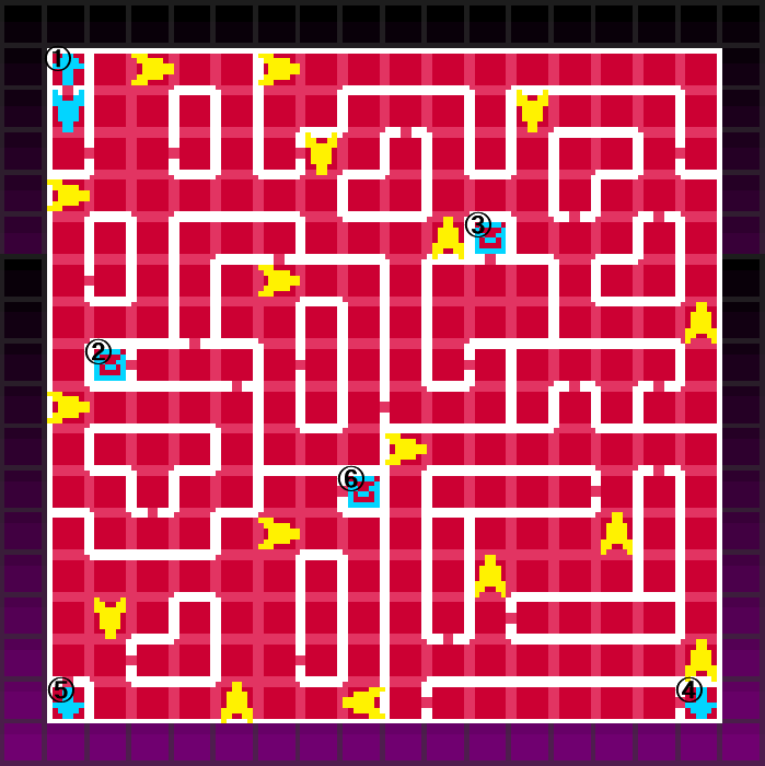 落とし穴にはまると、1Fの対応した小文字アルファベットの位置に落下する。